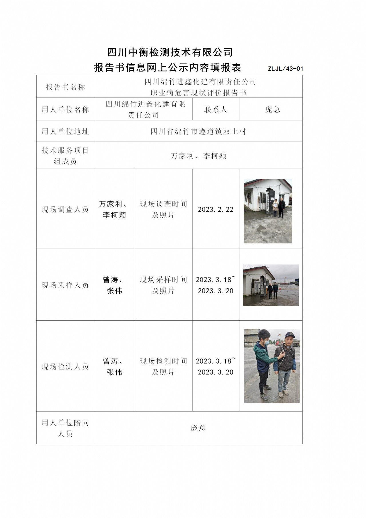 四川綿竹進鑫化建有限責任公司 職業病危害現狀評價報告書