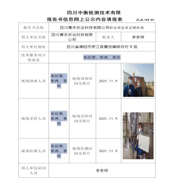 四川青禾農業科技有限公司定期檢測