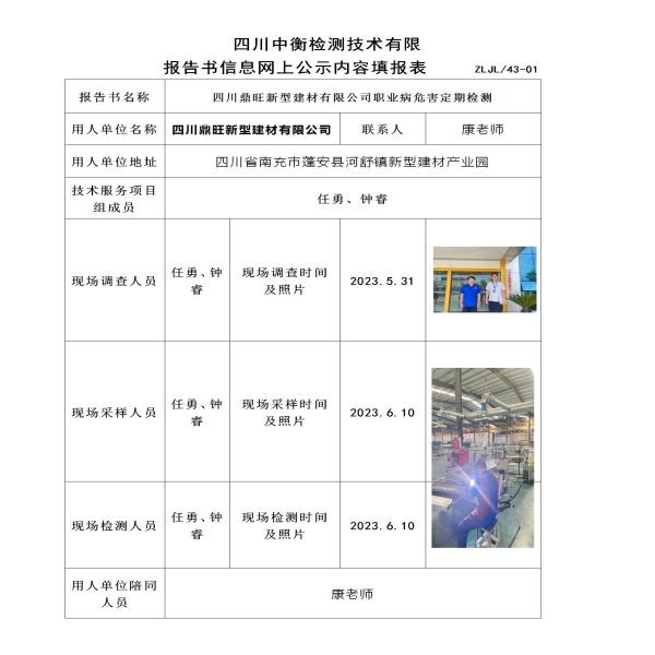四川鼎旺新型建材有限公司定期檢測
