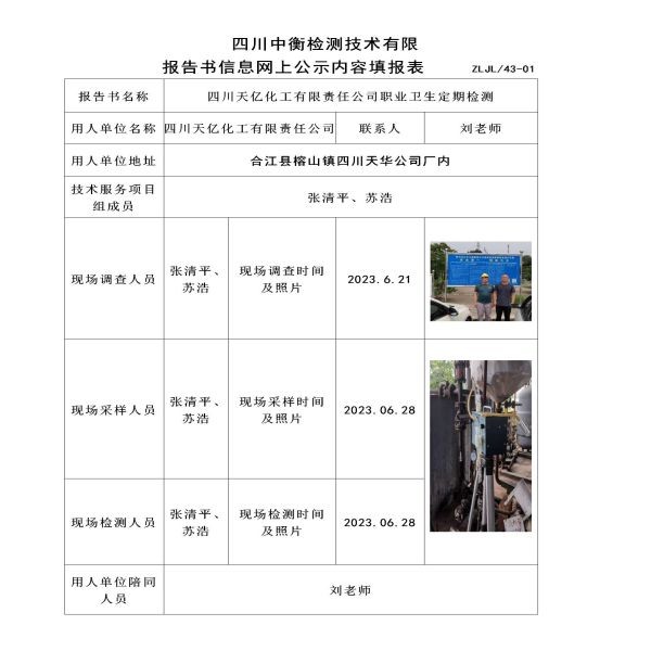 四川天億化工有限責(zé)任公司定期檢測(cè)