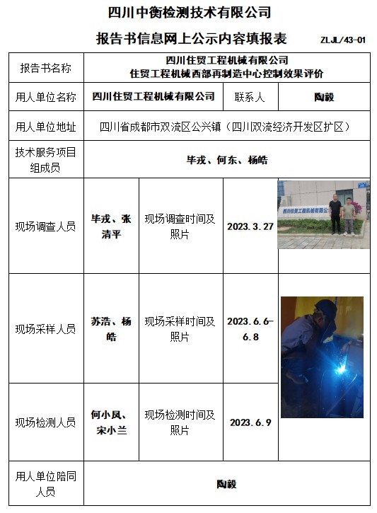 四川住貿(mào)工程機(jī)械有限公司 住貿(mào)工程機(jī)械西部再制造中心控制效果評(píng)價(jià)