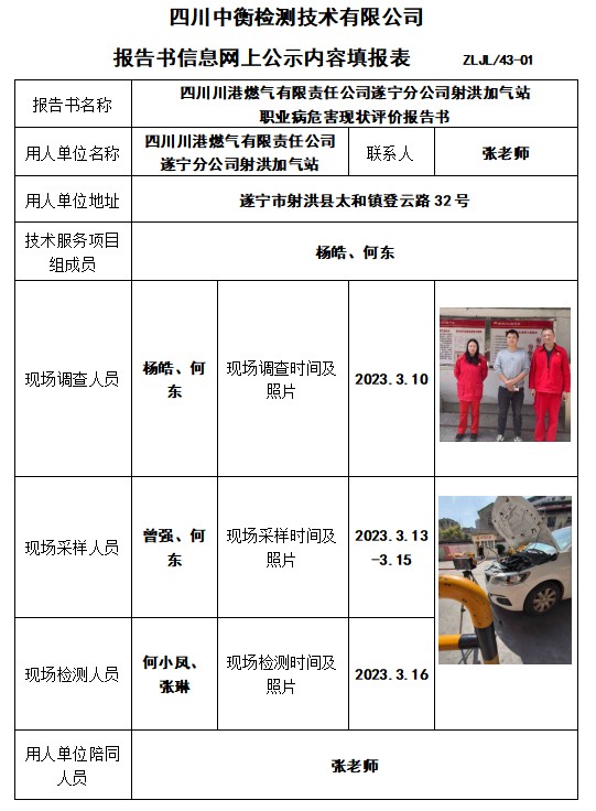 四川川港燃氣有限責任公司遂寧分公司射洪加氣站 職業病危害現狀評價報告書