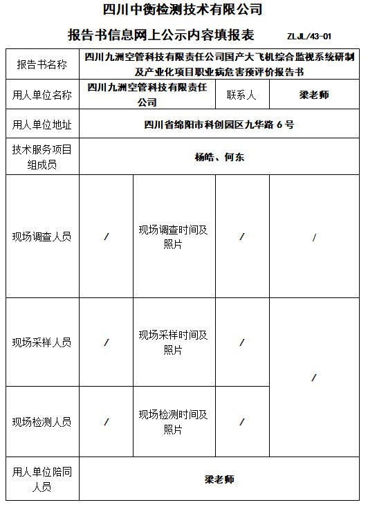四川九洲空管科技有限責任公司國產大飛機綜合監視系統研制及產業化項目職業病危害預評價報告書