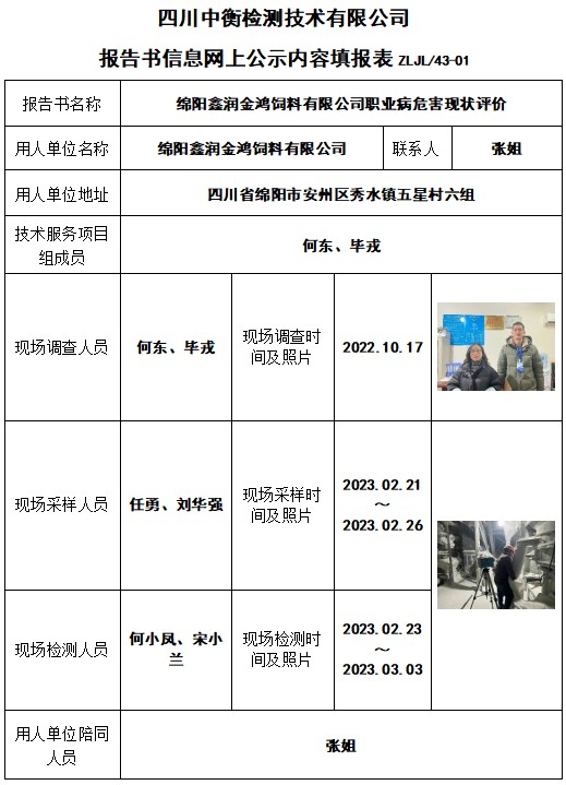 綿陽鑫潤金鴻飼料有限公司職業病危害現狀評價