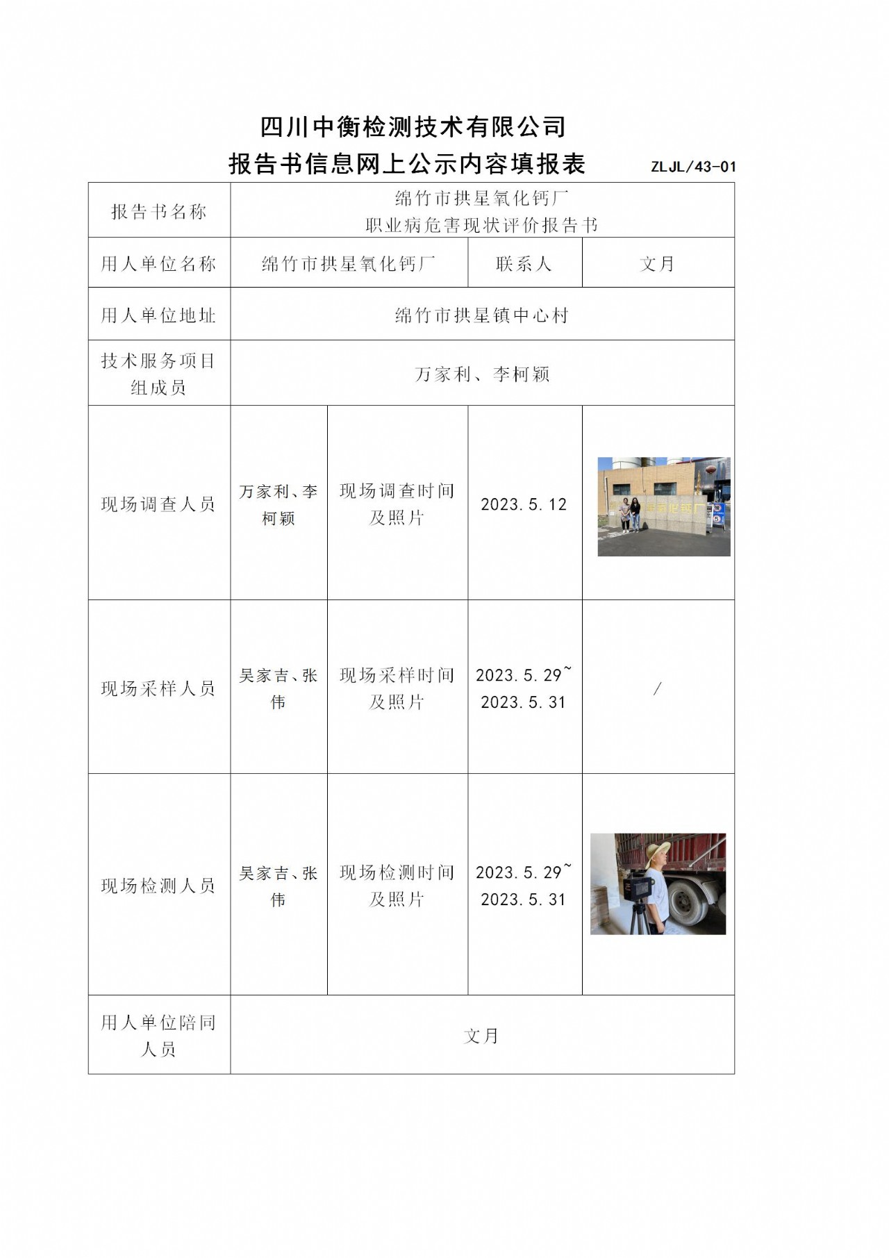 綿竹市拱星氧化鈣廠 職業(yè)病危害現(xiàn)狀評價