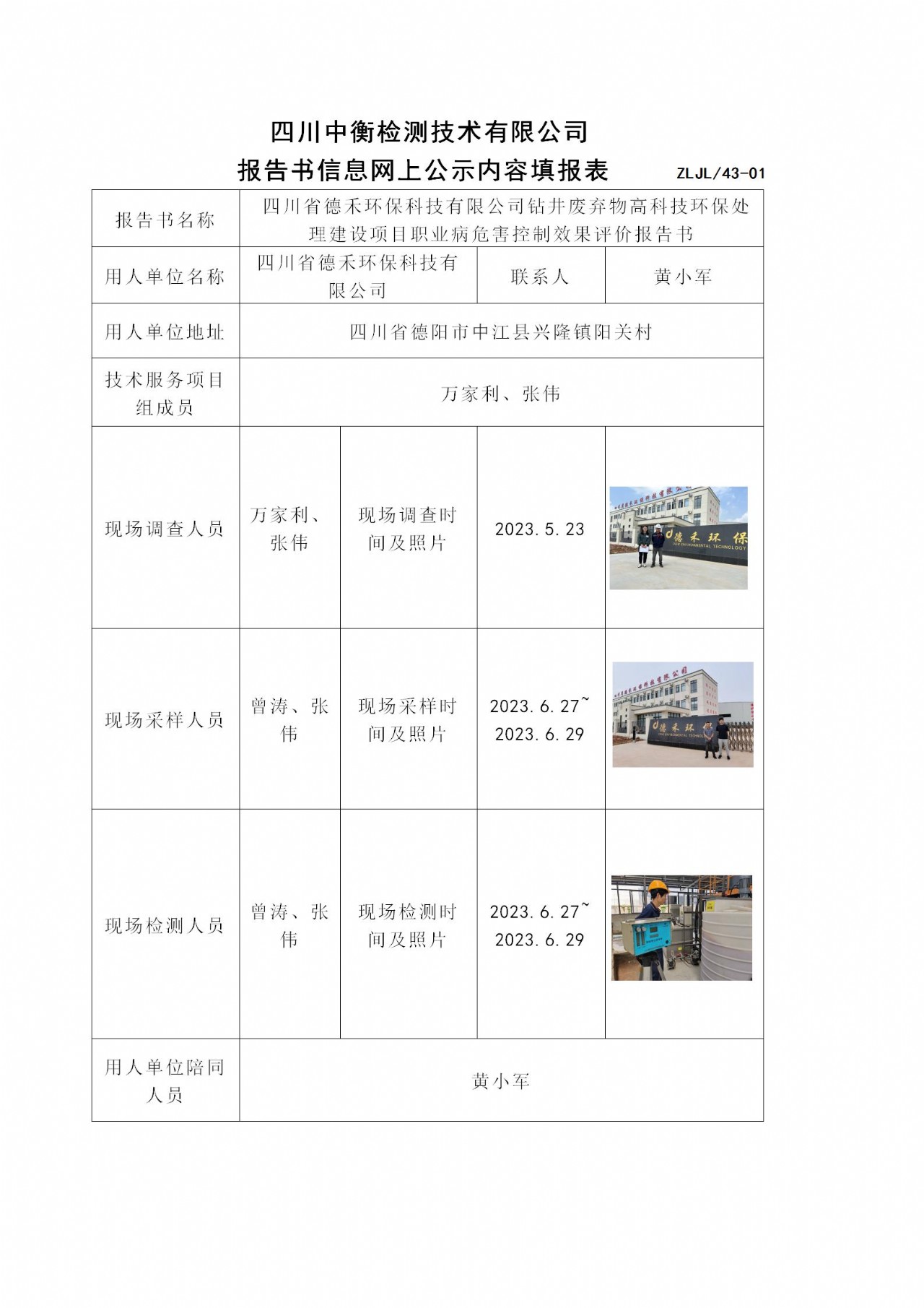 四川省德禾環保科技有限公司鉆井廢棄物高科技環保處理建設項目職業病危害控制效果評價