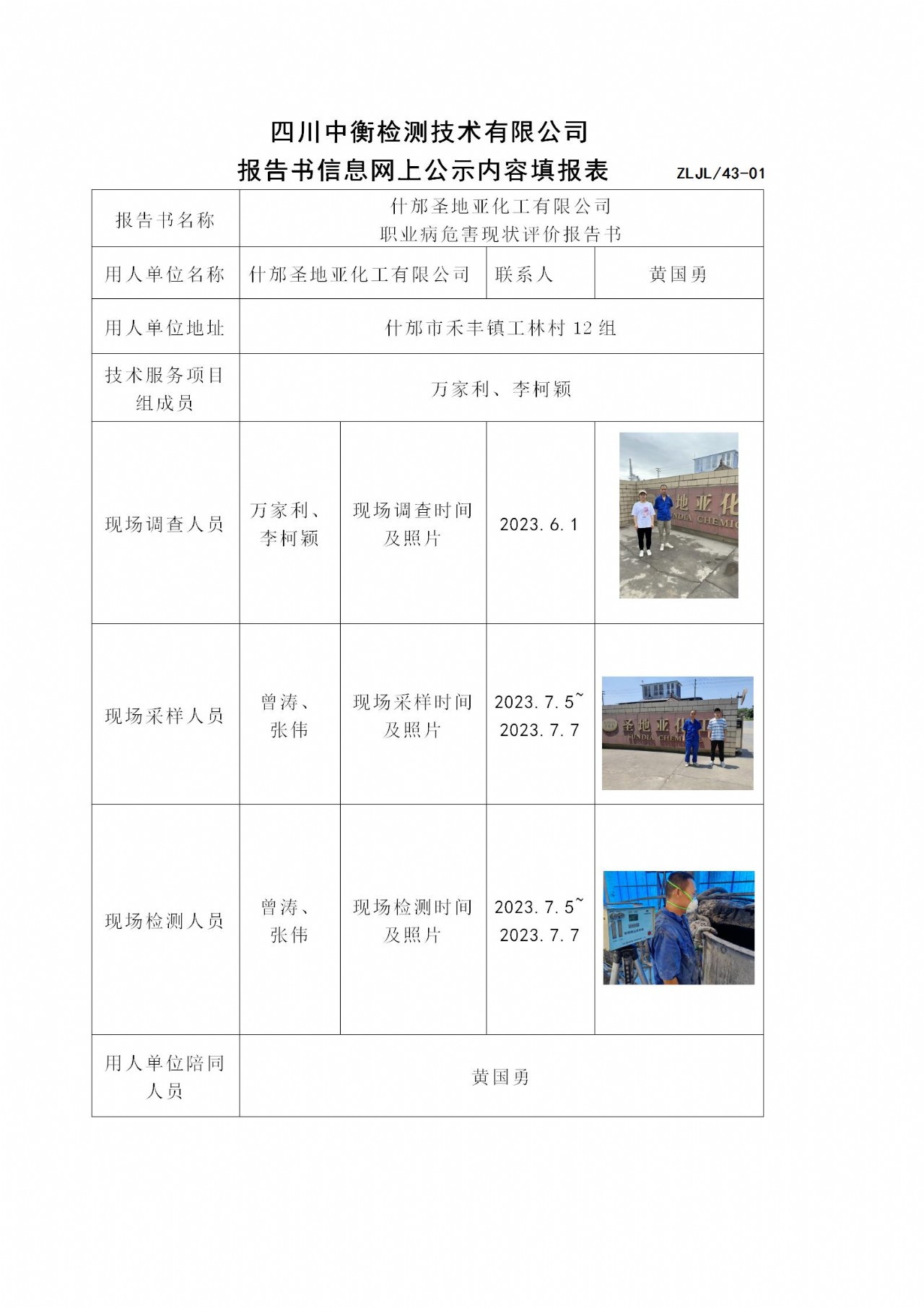 什邡圣地亞化工有限公司 職業病危害現狀評價報告