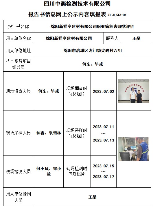 綿陽新祥亨建材有限公司職業(yè)病危害現(xiàn)狀評(píng)價(jià)