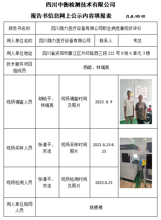 四川隱力醫(yī)療設(shè)備有限公司職業(yè)病危害現(xiàn)狀評價(jià)