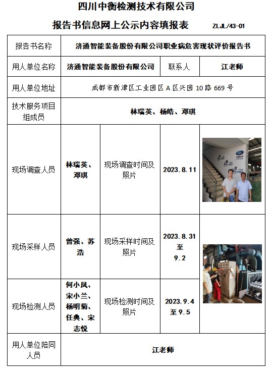 濟(jì)通智能裝備股份有限公司職業(yè)病危害現(xiàn)狀評(píng)價(jià)報(bào)告書