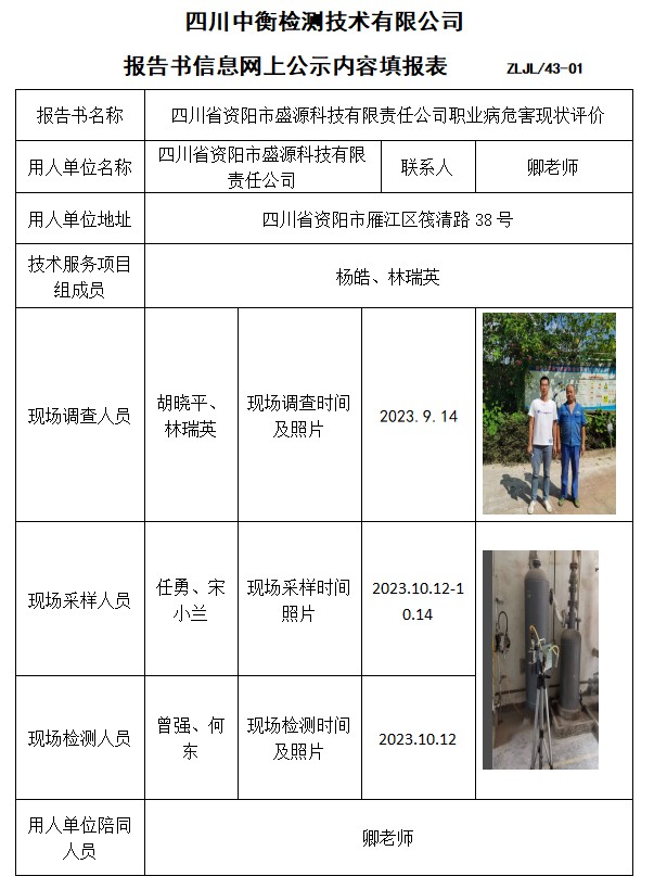 四川省資陽(yáng)市盛源科技有限責(zé)任公司職業(yè)病危害現(xiàn)狀評(píng)價(jià)