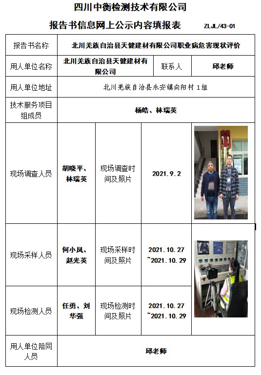 北川羌族自治縣天健建材有限公司職業病危害現狀評價