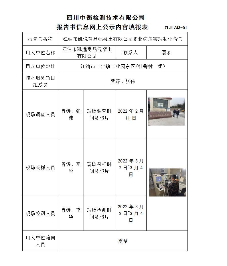 江油市凱逸商品混凝土有限公司職業(yè)病危害現(xiàn)狀評價