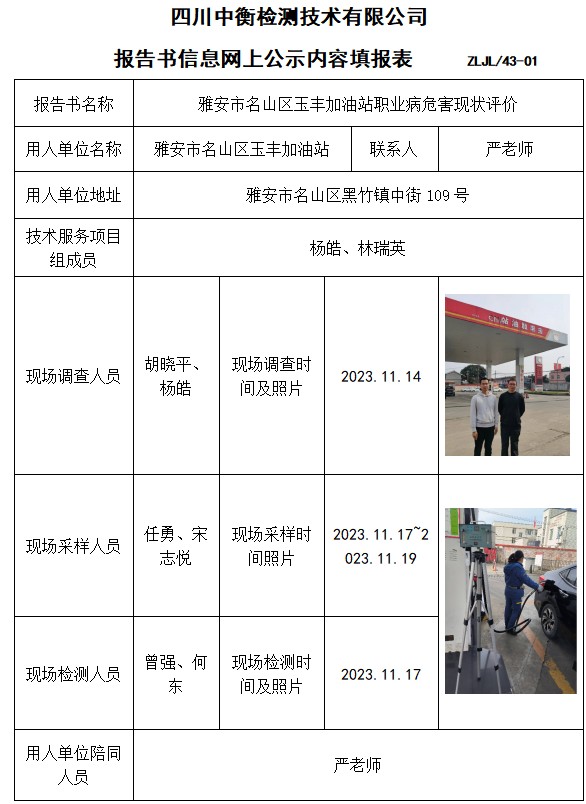 雅安市名山區(qū)玉豐加油站職業(yè)病危害現(xiàn)狀評(píng)價(jià)