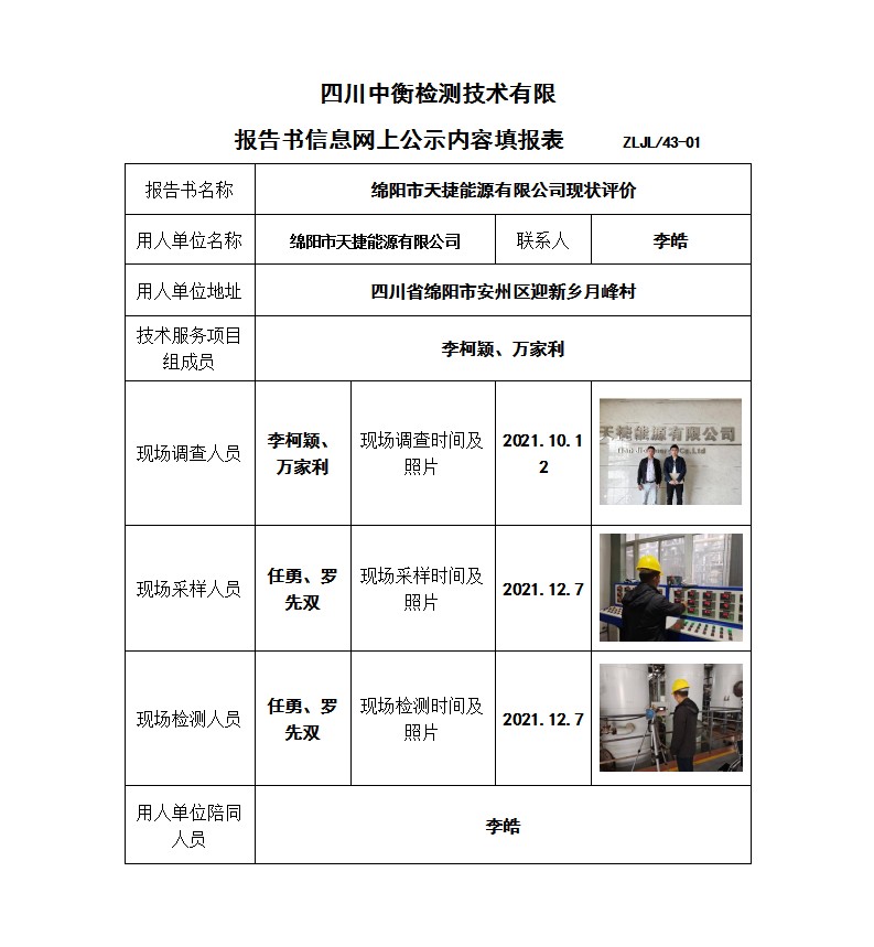 綿陽市天捷能源有限公司現(xiàn)狀評價(jià)