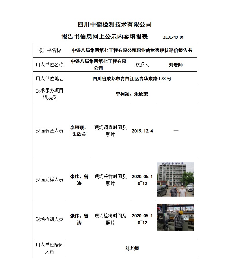 中鐵八局集團第七工程有限公司 職業病危害現狀評價報告書