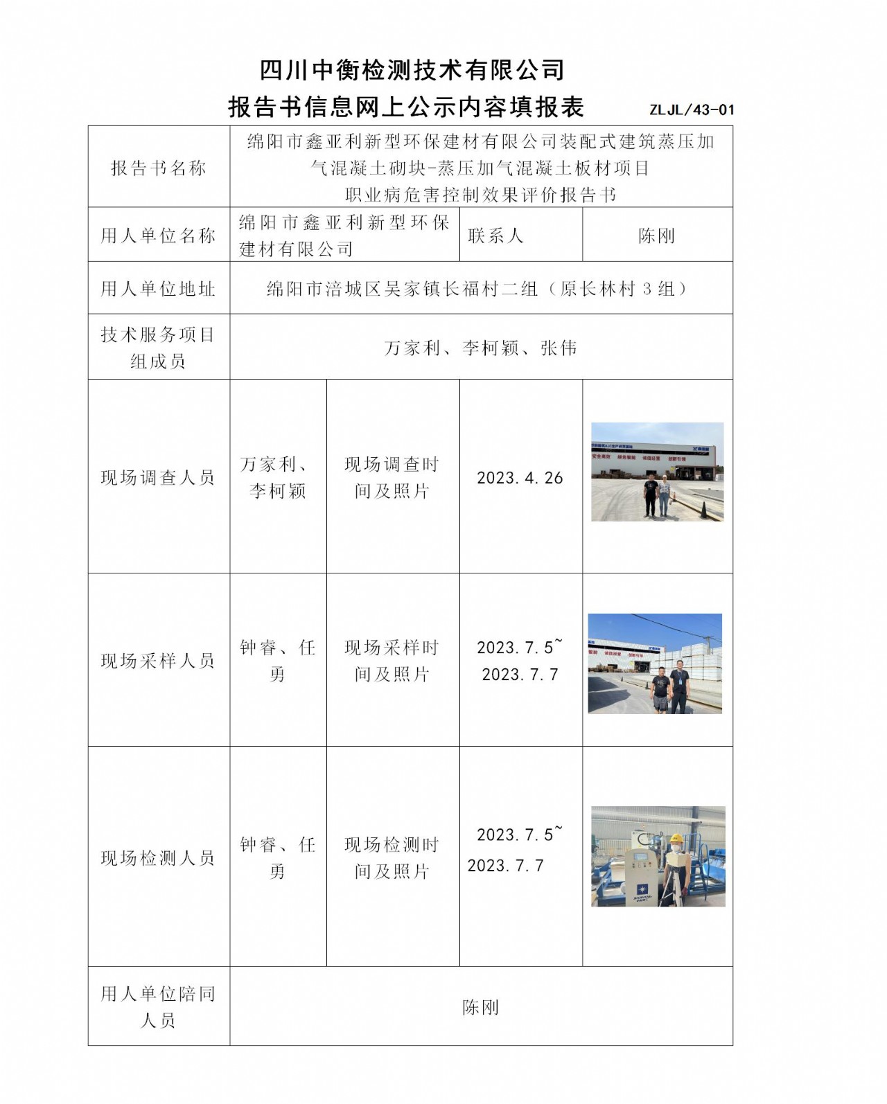 綿陽市鑫亞利新型環(huán)保建材有限公司裝配式建筑蒸壓加氣混凝土砌塊-蒸壓加氣混凝土板材項(xiàng)目 職業(yè)病危害控制效果評價(jià)