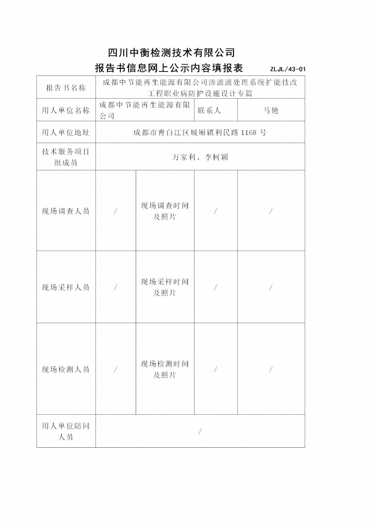 成都中節能再生能源有限公司滲濾液處理系統擴能技改工程職業病防護設施設計專篇