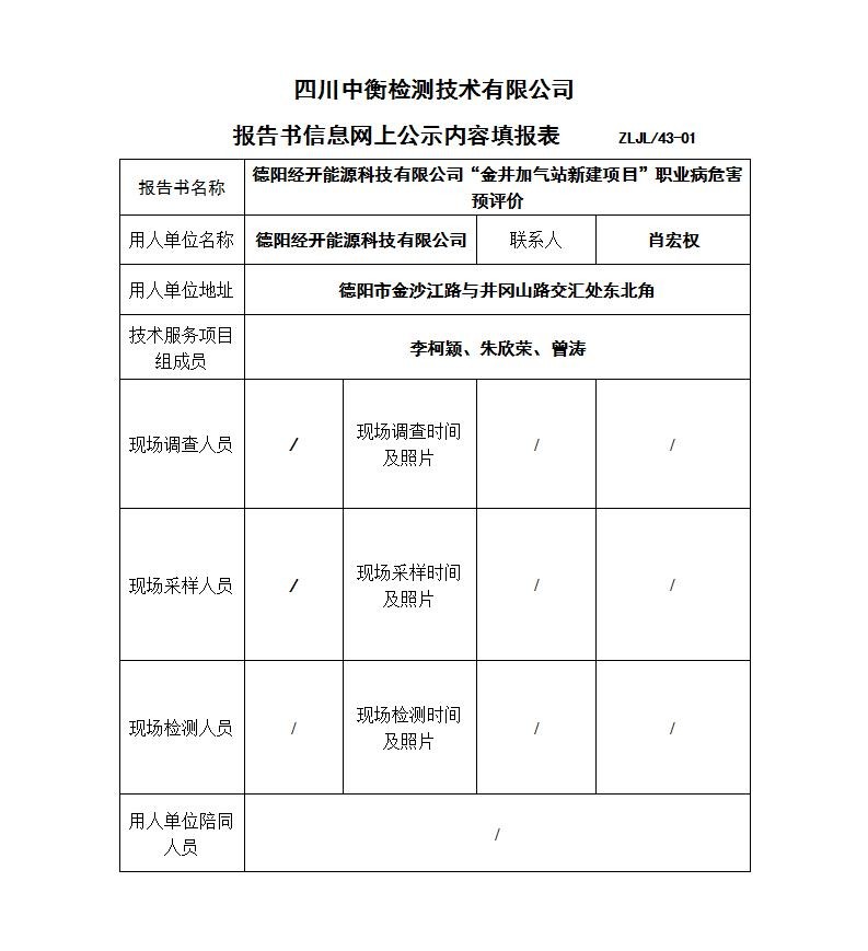 德陽經開能源科技有限公司“金井加氣站新建項目”職業病危害預評價