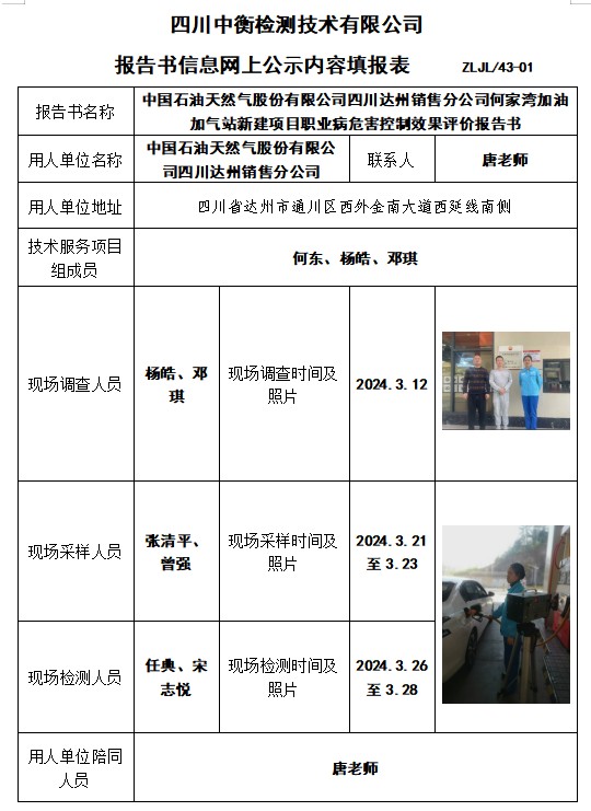 中國(guó)石油天然氣股份有限公司四川達(dá)州銷售分公司何家灣加油加氣站新建項(xiàng)目職業(yè)病危害控制效果評(píng)價(jià)報(bào)告書