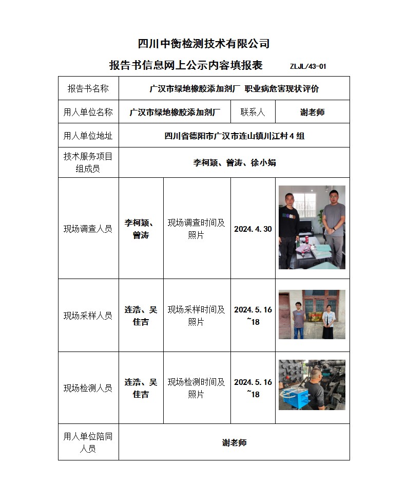 廣漢市綠地橡膠添加劑廠 職業病危害現狀評價報告書