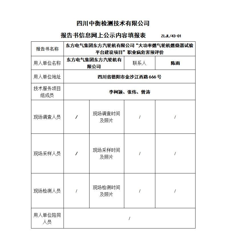 東方電氣集團東方汽輪機有限公司“大功率燃氣輪機燃燒器試驗平臺建設項目”職業病危害預評價