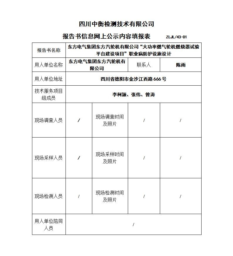 東方電氣集團東方汽輪機有限公司“大功率燃氣輪機燃燒器試驗平臺建設項目” 職業病防護設施設計