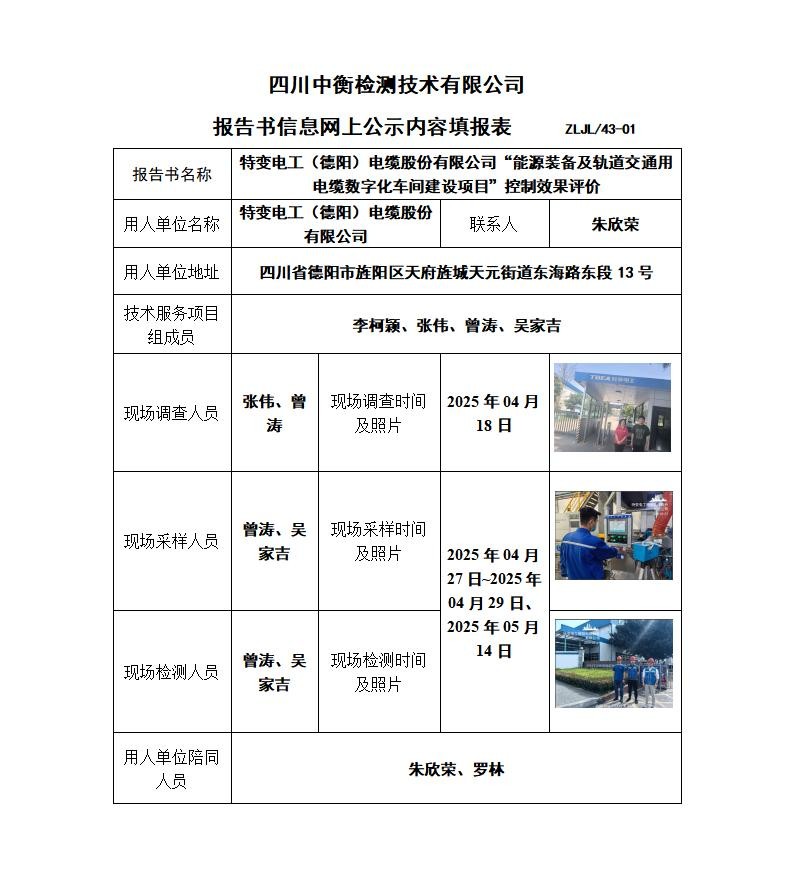 特變電工(德陽)電纜股份有限公司“能源裝備及軌道交通用電纜數字化車間建設項目”控制效果評價